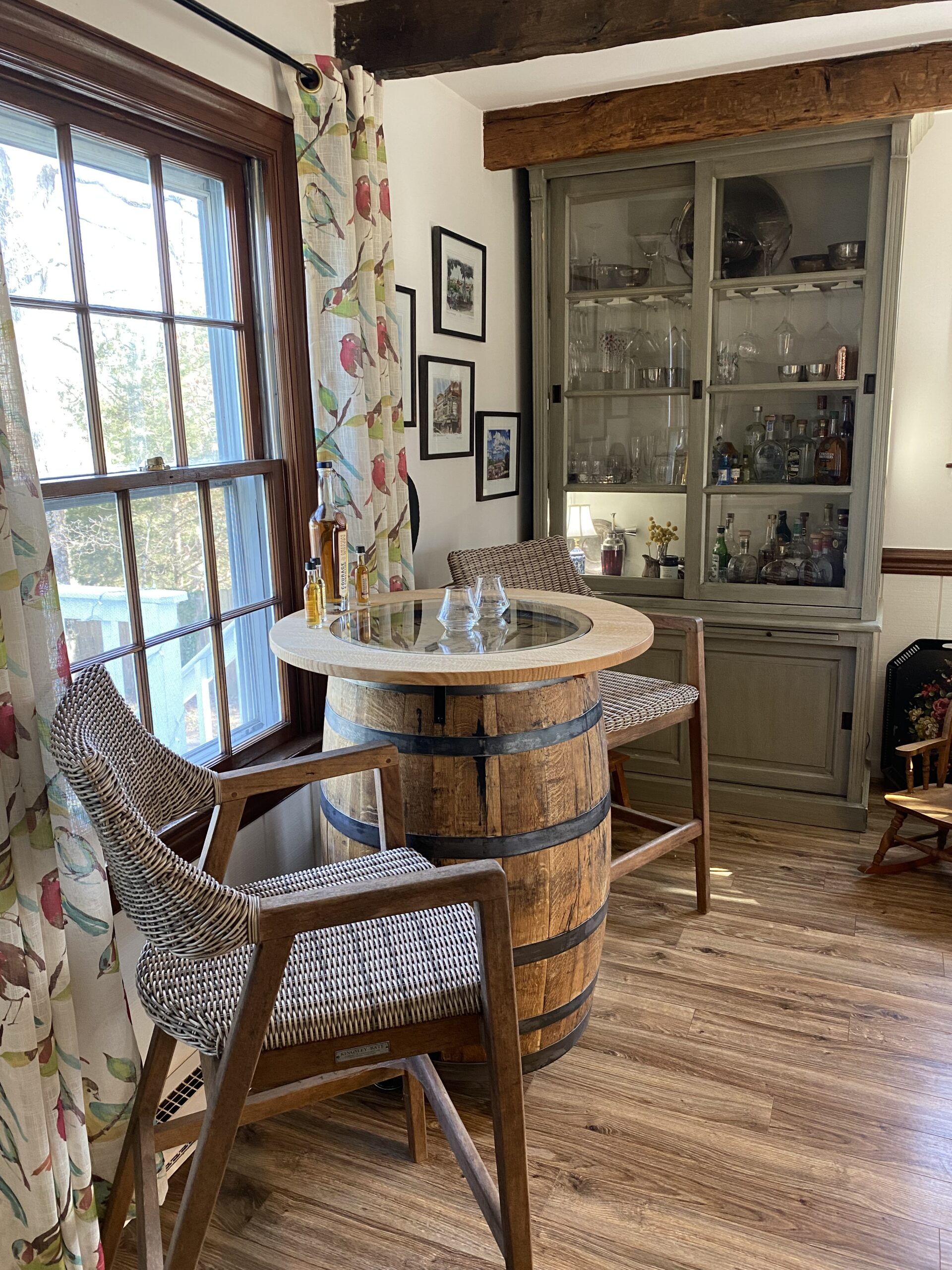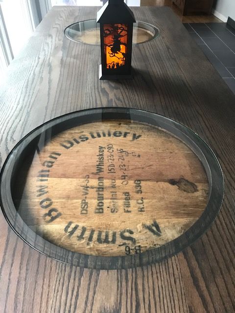 Fraser Wood Elements loves anything paired with a whiskey or vineyard barrel, so why not a solid quartern sawn red oak top to go with that barrel. Fraser Wood Elements mills their barrel tops to a 40″ inch diameter and we then mill out a 22″ diameter for a piece of glass to inlay. The glass inlay allows you to enjoy your brand specific barrel just a little bit more or add your own touch of art underneath the glass. Barrel not included in price. Hardware to attach barrel to top is included, watch video to see how to attach the two together.