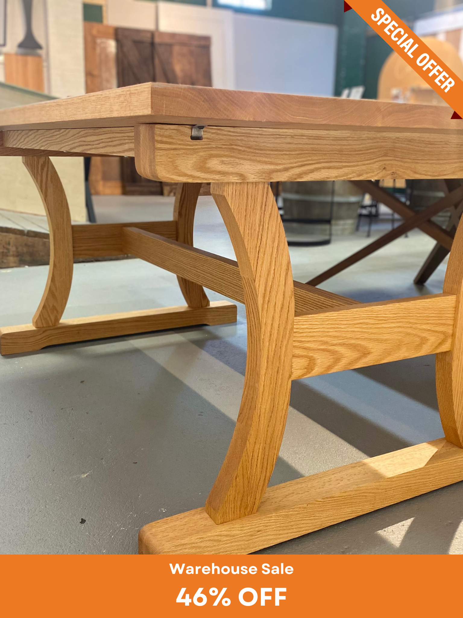 Gather around the perfect French country farm table. The soft lines of the trestle base create a welcoming dining area that everyone will want to pull a chair up to.