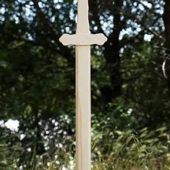 This Sturdy Wooden Short Sword is made from solid pine with just under 2 inch width, 3/4 inch thickness, and 28 inch length. Designed with durability in mind and made to be used, not just looked at. Built to last as a prop or toy. Blunt edges/point and good thickness make this safer for children but should never be swung full force at another person… it is heavy enough to hurt. Perfect for pretend play, Halloween costumes, and Renaissance Fairs, adults as well as children.
