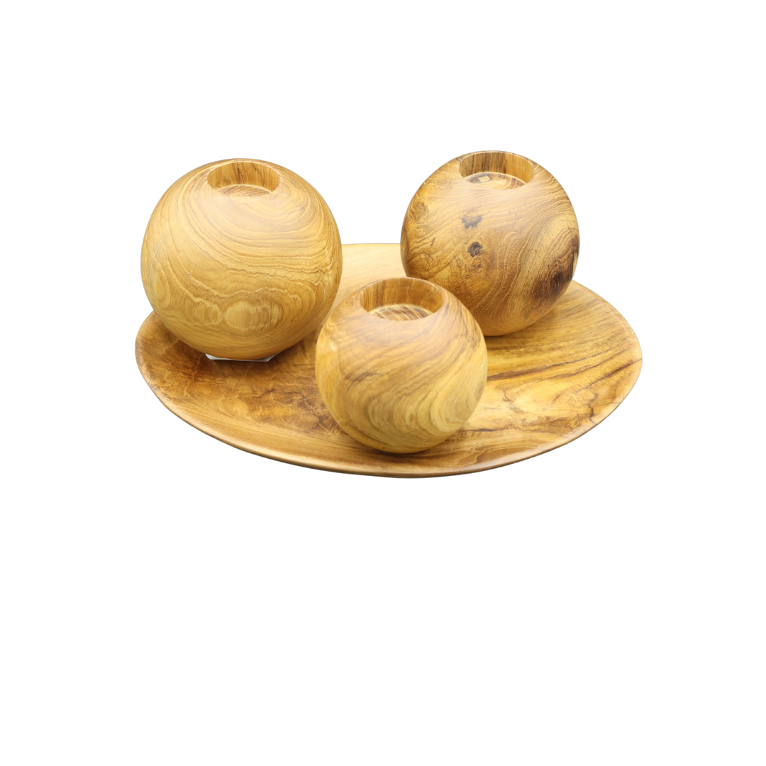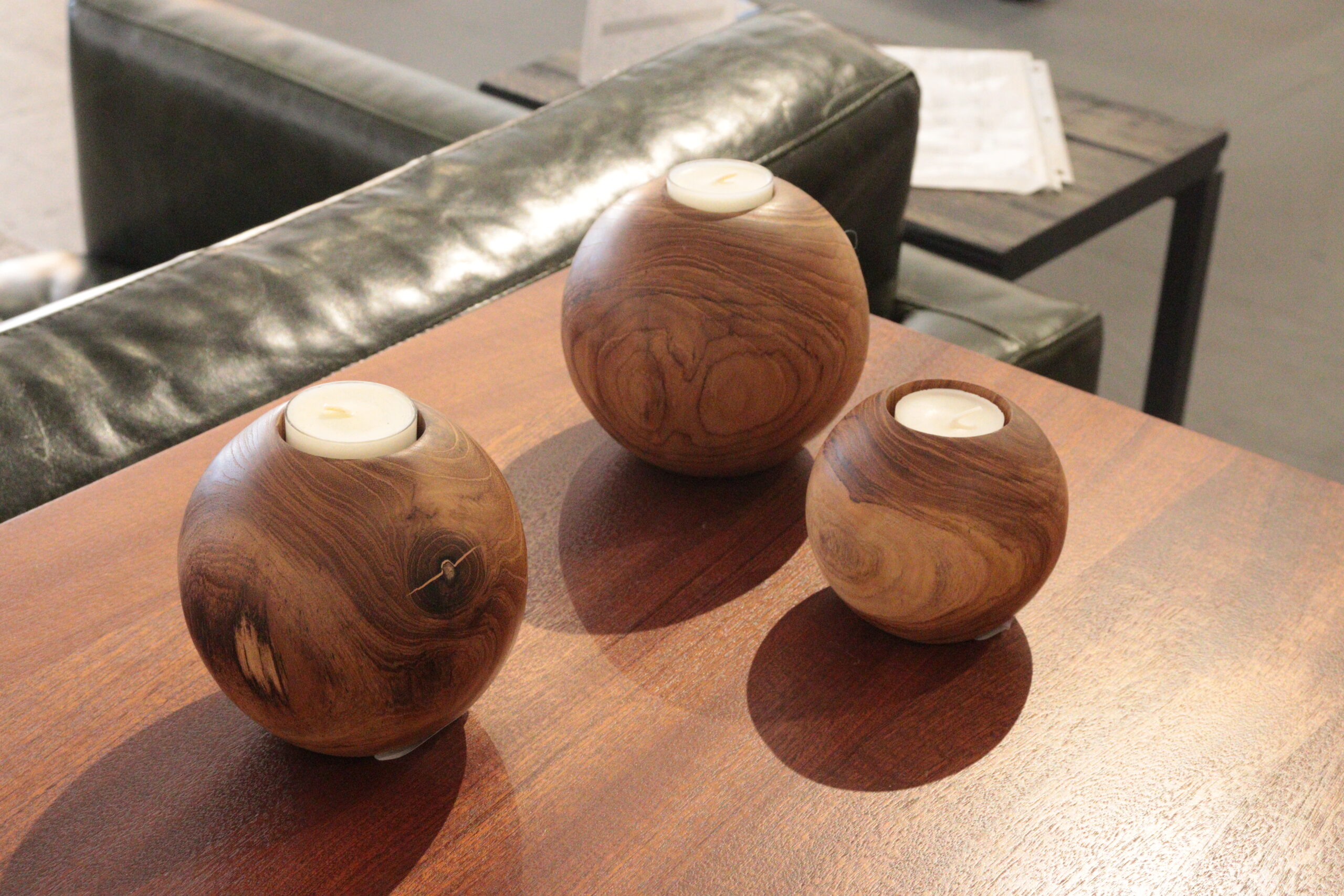 Coming in large and medium, our wooden candle holders are the perfect, cozy touch to any space. Handcrafted by Indonesian master wood artisans to hold any tea light candle, the Javanese teak wood is famous for its durability. Tea light candles and dish not included.