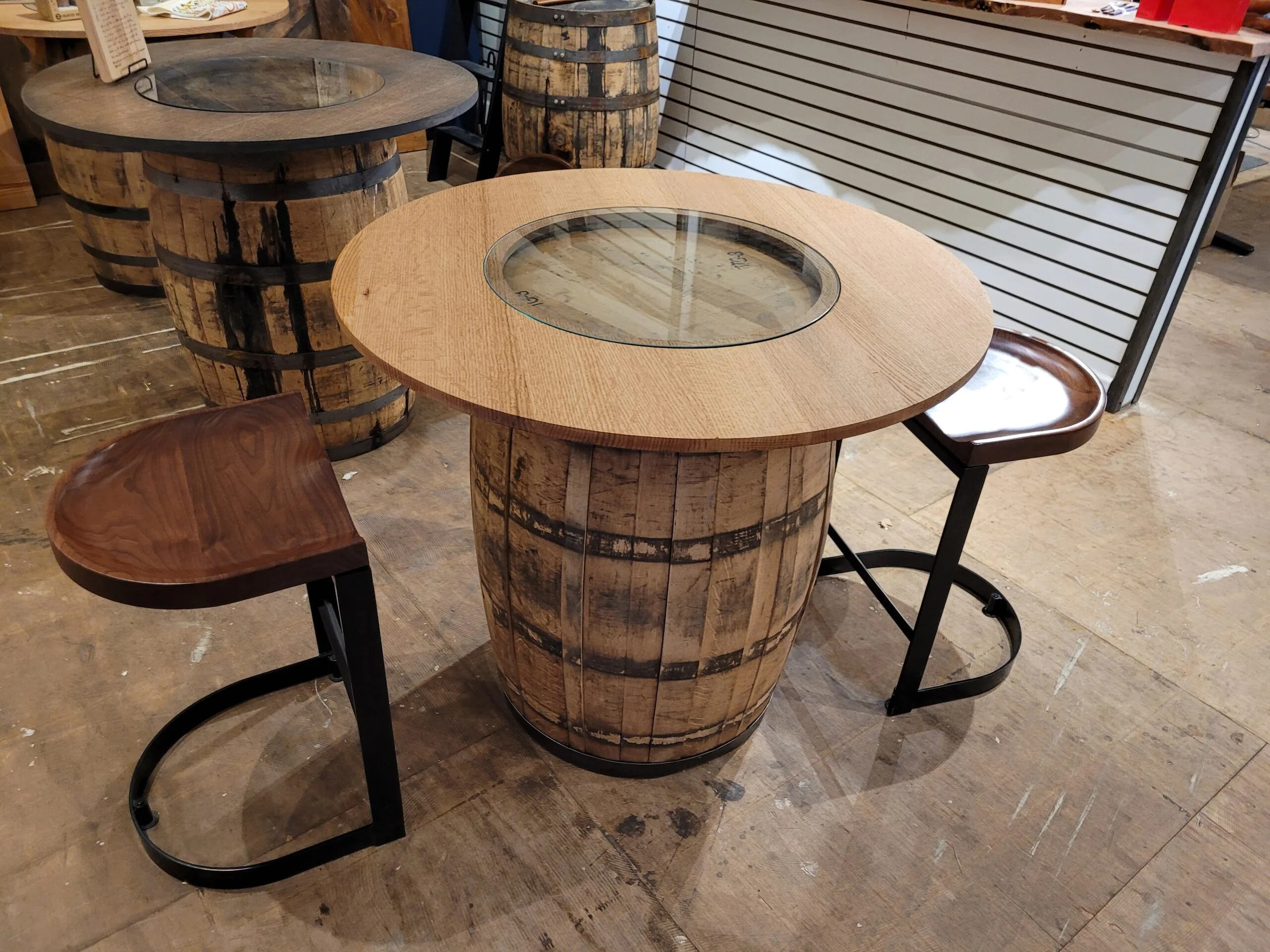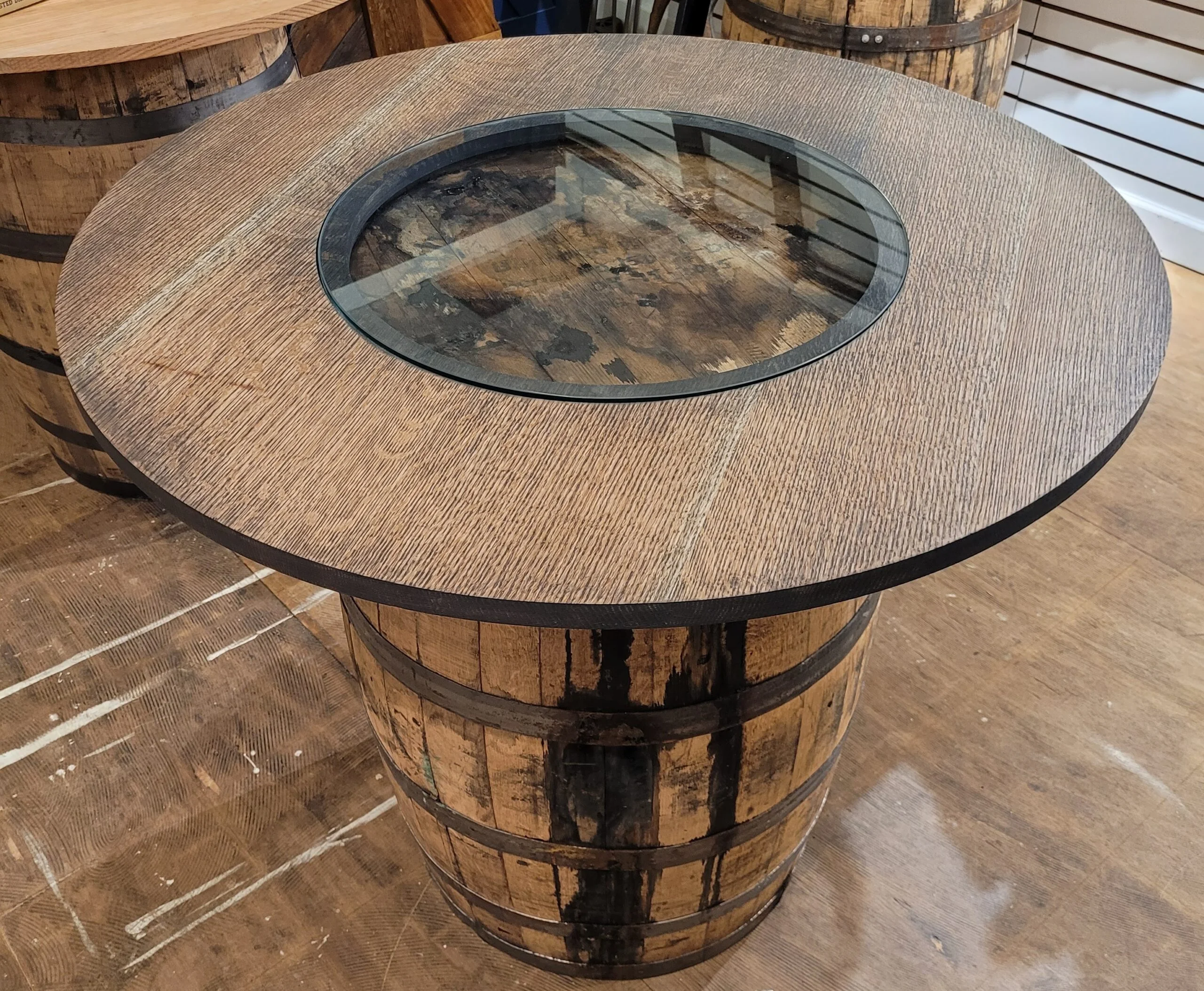 Our whiskey barrel pub table is made using only solid American red oak and premium oil finishes. It can be paired with locally sourced reclaimed whiskey barrels from A. Smith Bowman Barrels. The price includes the glass inserts. Enjoy a sip of your favorite beverage while sitting at these classic pub tables. It’s 5 O’Clock somewhere!